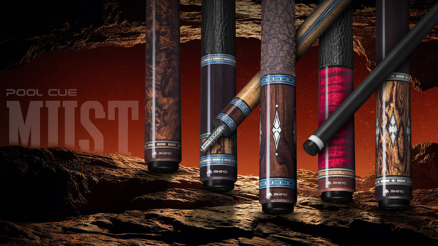 RHINO MUST POOL CUE - MU1 BURL BLUEPOINT